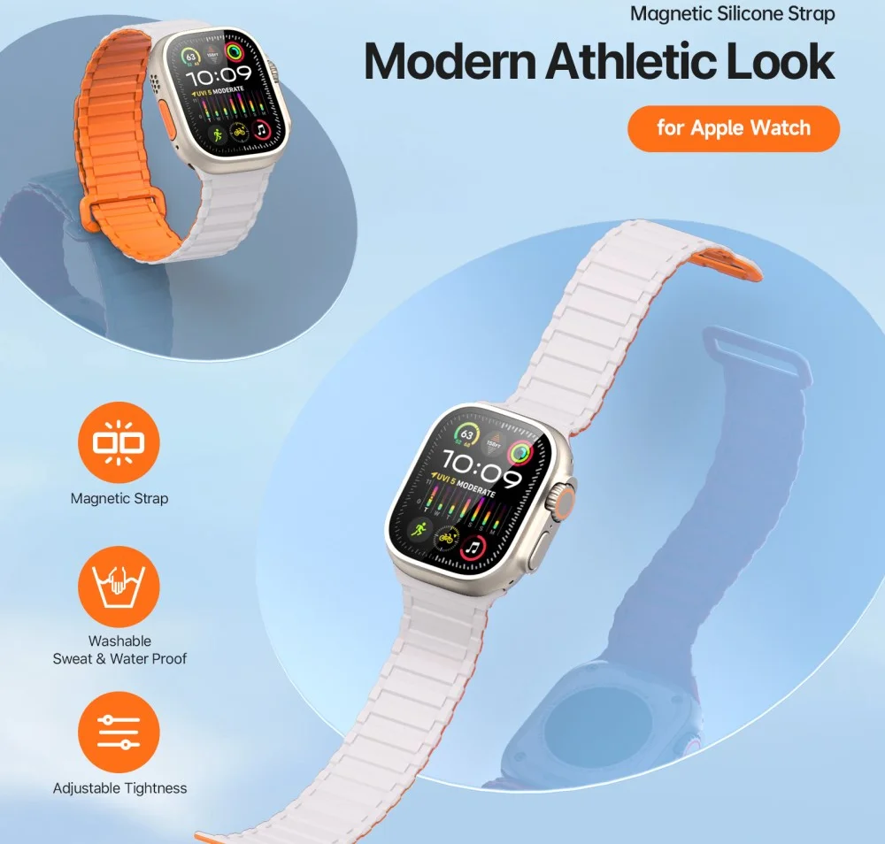 Dit Ducis Apple Watch 1-10/SE/Ultra bandje is gemaakt van zacht, lichtgewicht siliconen materiaal waardoor het comfortabel aanvoelt op de huid. Het siliconen materiaal is zweet- en waterbestendig, dus je maakt het bandje gemakkelijk schoon. Hierdoor is het bandje ook geschikt voor tijdens het sporten of andere activiteiten. Het bandje blijft door de magneetsluiting stevig gesloten en valt niet zomaar van de pols. Door deze sluiting is het bandje ook gemakkelijk aan te passen voor een optimaal comfort om de pols.