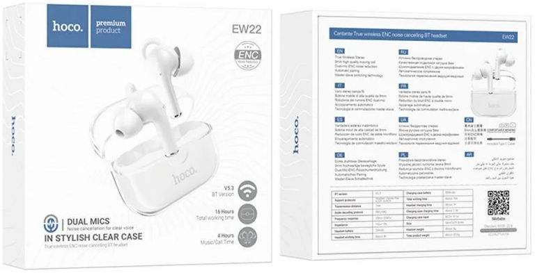 Met deze Hoco EW22 Wireless Bluetooth Earbuds geniet je van jouw favoriete muziek met hoge tonen en diepe bass. Door de microfoons zijn telefoongesprekken kraakhelder en bel je zonder je telefoon in de hand te hebben. Elk oortje kan je maximaal 4 uur gebruiken. Via Bluetooth 5.3 verbind je gemakkelijk de headset met je apparaat. De koptelefoon beschikt over Noise Cancellation wat er voor zorgt dat je jezelf helemaal kunt afzonderen van de buitenwereld. De oorkussens zijn gemaakt van zeer comfortabel materiaal zodat je lange tijd de oordoppen in kan doen zonder dat het irriteert. Als je even wil luisteren naar muziek of naar een filmpje wil kijken dan kan dat ook samen met het hoge geluidskwaliteit dat deze headset biedt. Door het compacte formaat en het lichte gewicht van de set kun je hem altijd bij je hebben - in je tas, rugzak of broekzak