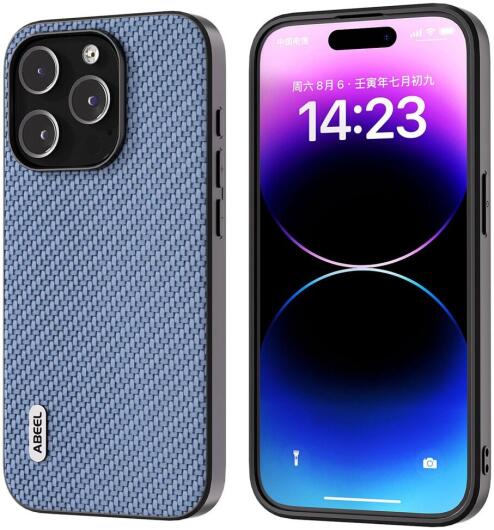 ABEEL Carbon Apple iPhone 15 Pro Max Hoesje Back Cover Lichtblauw