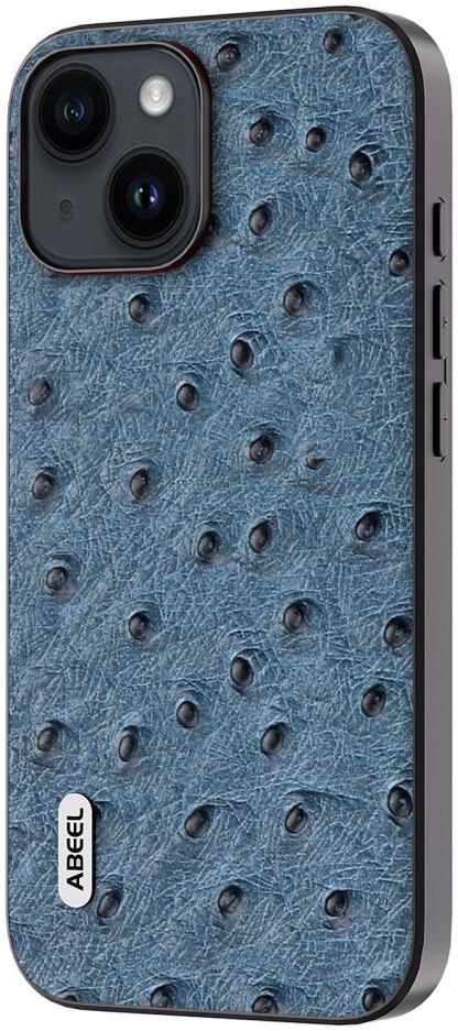 ABEEL Ostrich Apple iPhone 15 Hoesje Leer Back Cover Blauw