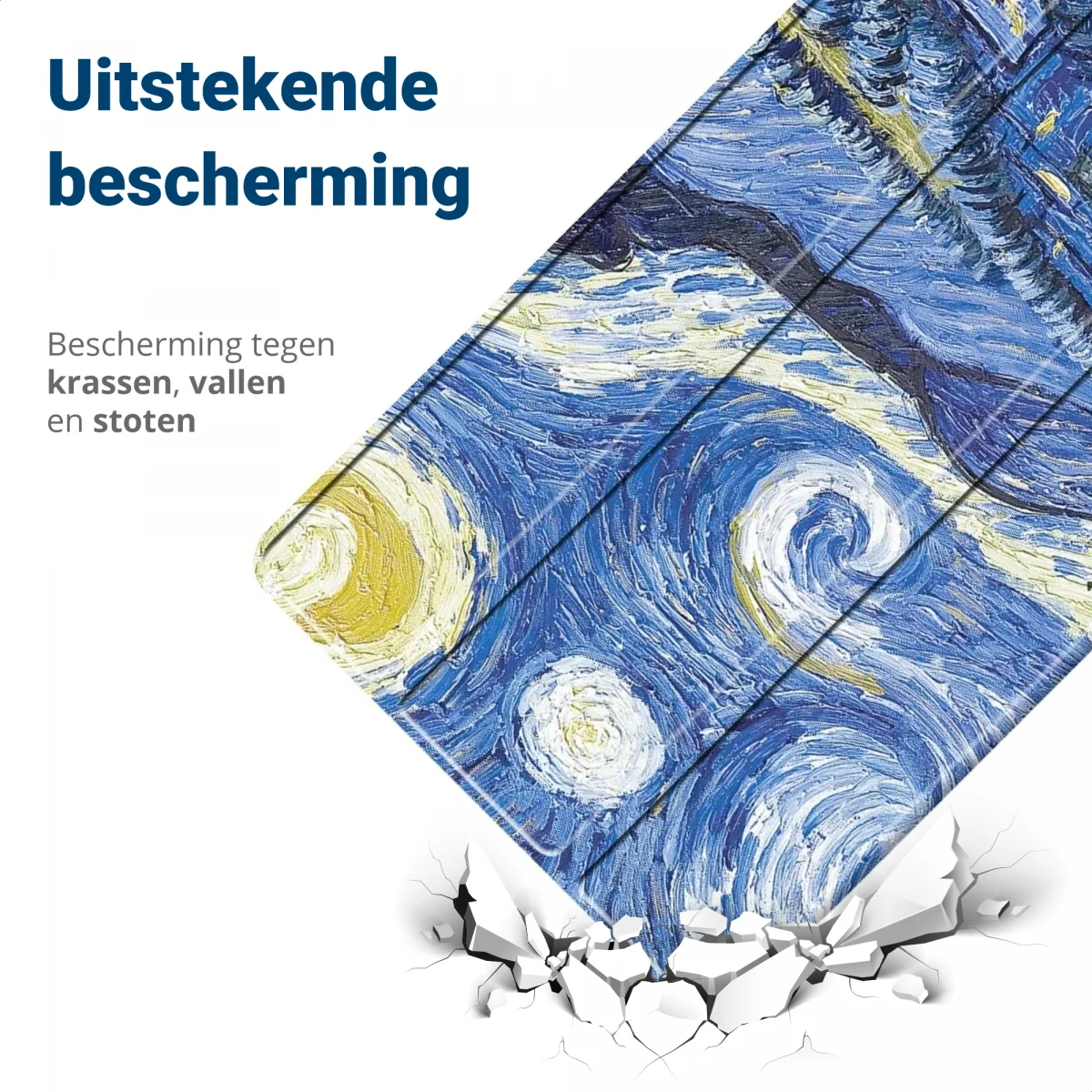 Mijn vader is 93 en gebruikt zijn Ipad veel. Maar hij schiet nog wel eens uit zijn handen. Deze cover icm een screenprotector hebben de Ipad al vaker gered. De cover sluit goed, Ipad past er mooi in. En van de afbeelding werd Pa helemaal blij. Na een jaartje gebruikt slijt de afbeelding wel wat, maar dat doet verder niets af aan de beschermende werking van de hoes.