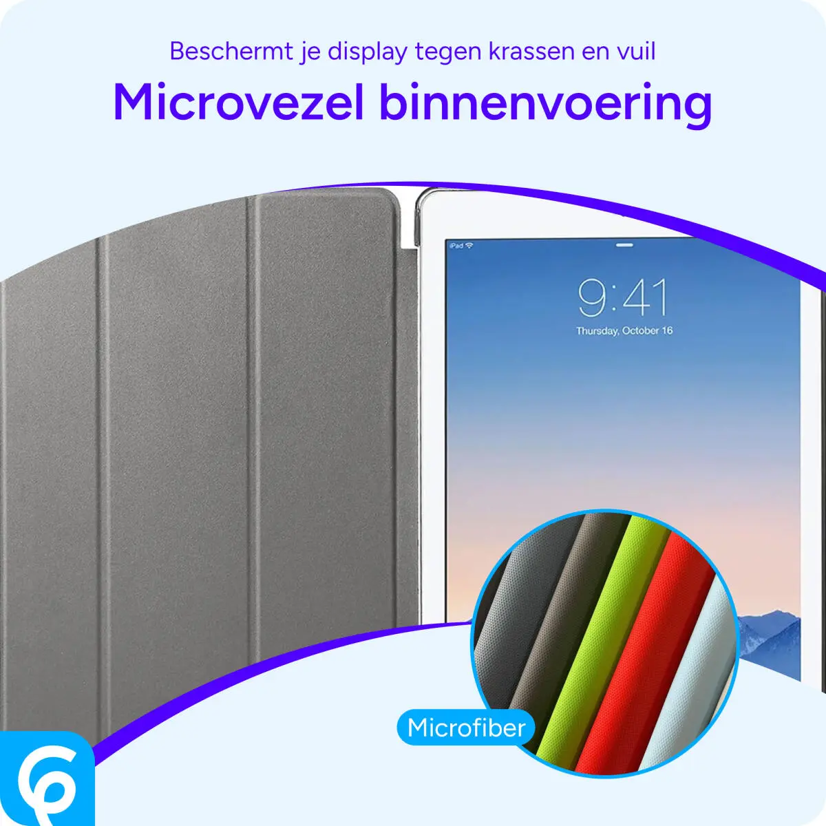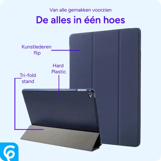 Jouw Apple iPad 9.7 2017 / 2018 / Air (2) geniet 360 graden bescherming met deze Book Case. De hoes bestaat uit een kunstlederen flip die zowel de voor- als achterzijde bescherming biedt en een hard plastic frame dat je iPad 9.7 2017 / 2018 / Air (2) stevig op zijn plek houdt. Een microfiber voering aan de binnenzijde beschermt de display tegen krassen en vuil. Door de verstevigingen in de hoeken biedt de hoes een uitstekende bescherming tegen vallen en stoten. De hoes beschikt verder over een tri-fold stand, waarmee jij je Apple iPad 9.7 2017 / 2018 / Air (2) horizontaal kunt neerzetten in verschillende hoeken.