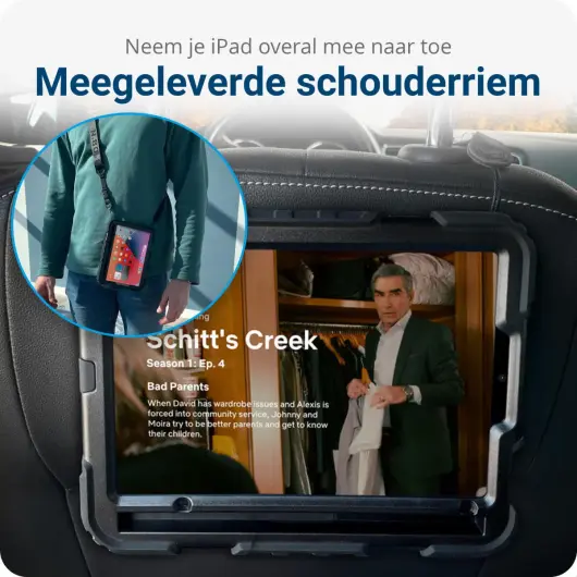Deze hoes is ideaal voor beroepen waarin je veel in beweging bent. Denk hierbij aan beroepen in de bouw, logistieke sector of de horeca. De handriem is ideaal wanneer je orders aan het picken bent, bestellingen in de horeca opneemt of wanneer je een bouwtekening aan het bekijken bent. Daarnaast beschikt de hoes over een uitklapbare, 360 graden draaibare kickstand. Hiermee kun jij je tablet in de gewenste kijkhoek plaatsen in zowel horizontale als verticale positie. Met de meegeleverde schouderband kun jij je Apple iPad Pro 11 gemakkelijk om je lichaam bevestigen en comfortabel meenemen.