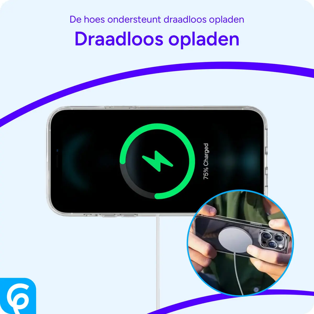 Prima helder doorzichtige backcover met draadloos oplaad mogelijkheid