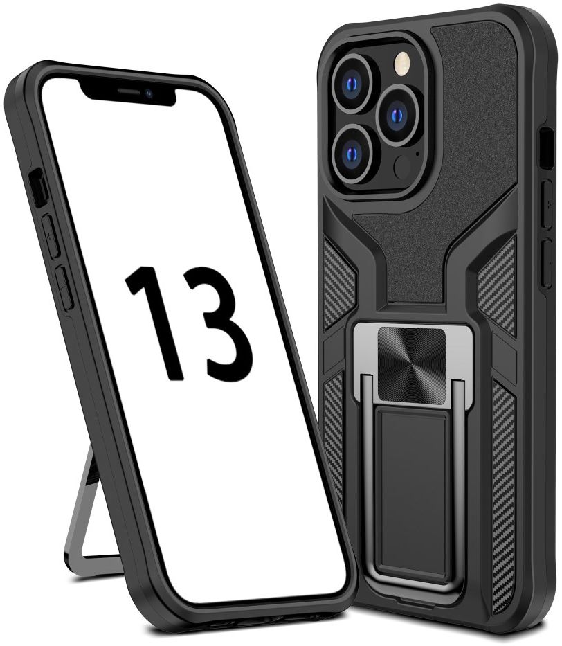 Apple iPhone 13 Pro Hoesje Hybride met Kickstand Back Cover Zwart