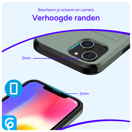 - Verhoogde randen rond de camera uitsparing en de display voor extra bescherming