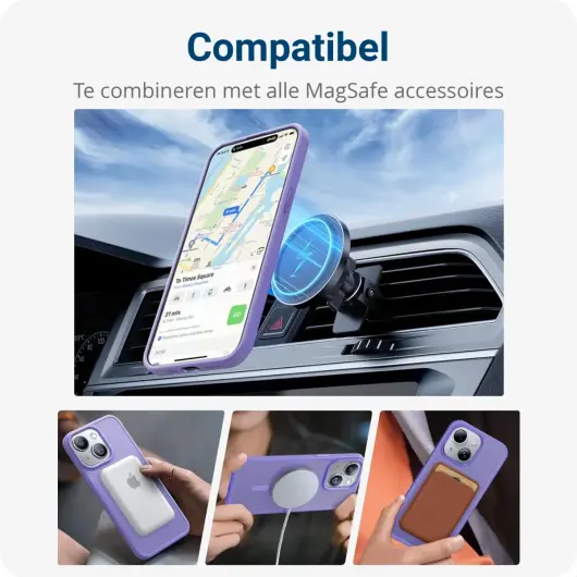 - Magnetisch te bevestigen en daardoor 360° draaibaar op MagSafe (auto)houders