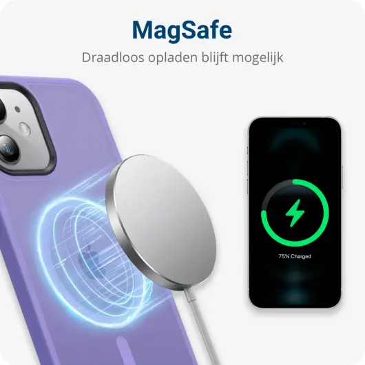 - Door de ingebouwde magneten klik je het hoesje op MagSafe accessoires.