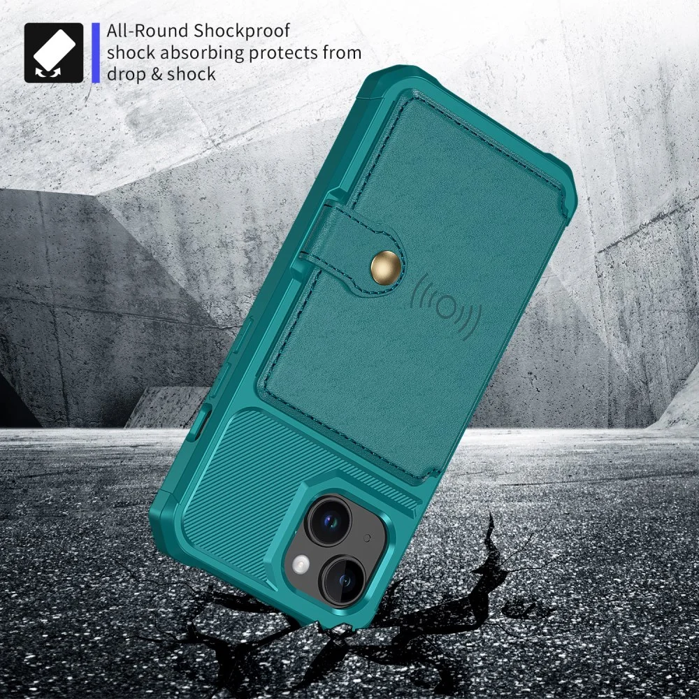 Apple iPhone 15 3 in 1 Back Cover Portemonnee Hoesje Groen Blauw