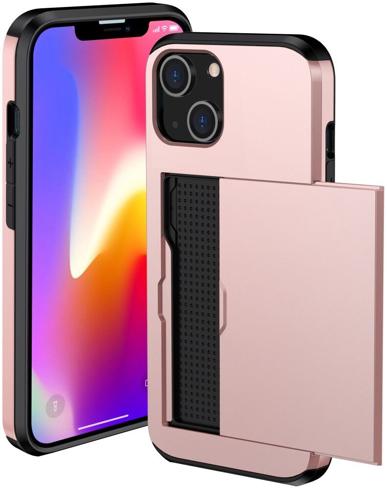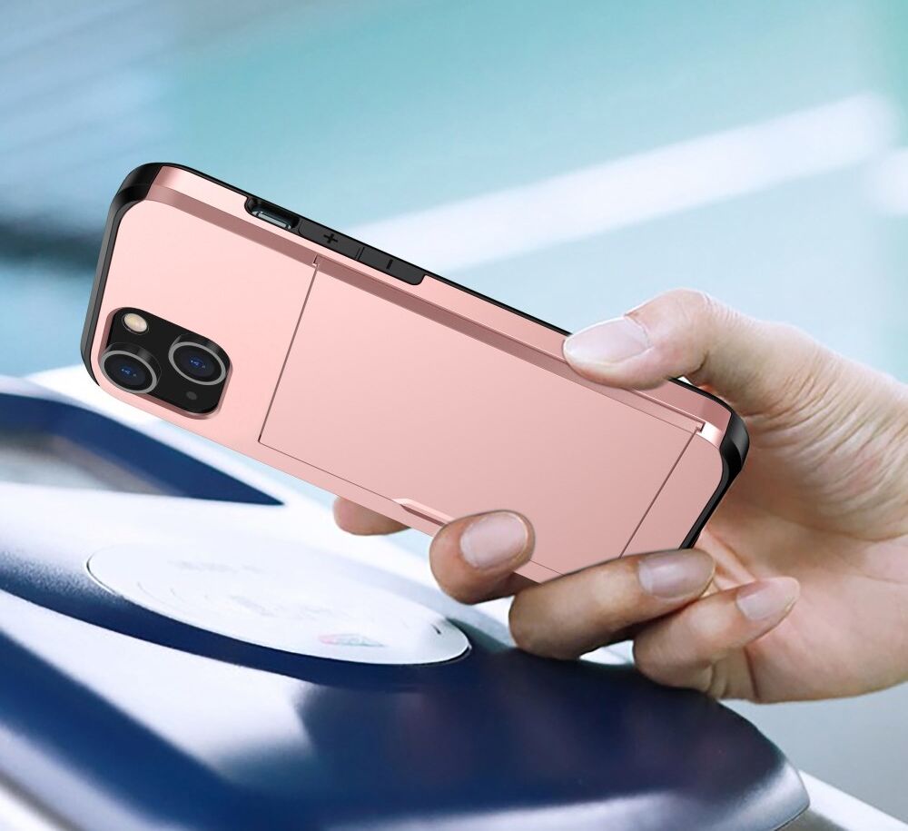 Apple iPhone 15 Hoesje met Slider Kaarthouder Back Cover Roze