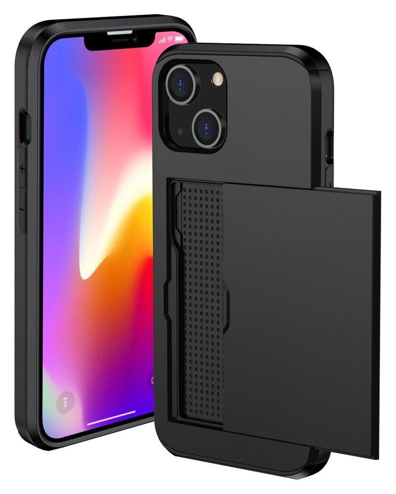 Apple iPhone 15 Hoesje met Slider Kaarthouder Back Cover Zwart