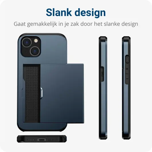 Apple iPhone 15 Plus Hoesje met Slider Kaarthouder Back Cover Blauw