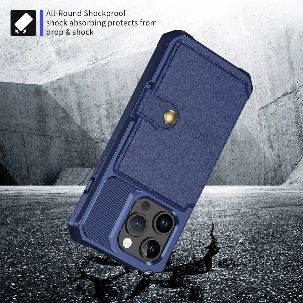 Vergeet je vaak je pasjes? Met dit Apple iPhone 15 Pro hoesje is dat verleden tijd! Deze back cover is voorzien van vier kaartvakken en ruimte voor briefgeld waardoor het jouw portemonnee kan vervangen! De kaarthouder op de achterkant is voorzien van een drukknoopsluiting zodat je pasjes/briefgeld er niet uitvallen en is magnetisch te plaatsen op bijvoorbeeld een autohouder. Daarnaast biedt het hoesje door de verhoogde randen bij de camera en display bescherming tegen krassen en andere dagelijkse schade.