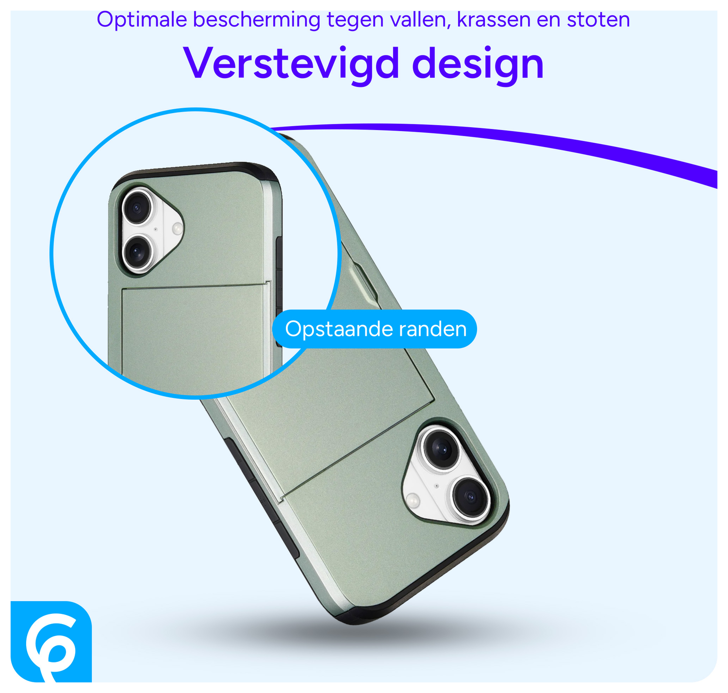 - Verhoogde randen rond camera en scherm bieden extra bescherming.