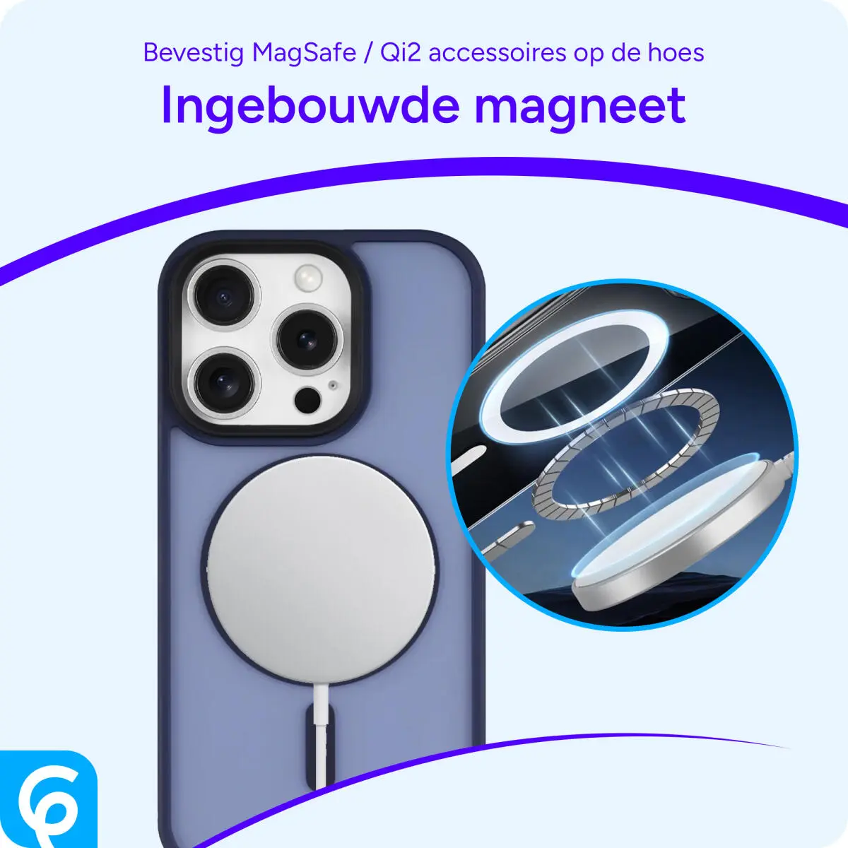 Apple iPhone 16 Pro Hoesje met MagSafe Back Cover Matte Blauw