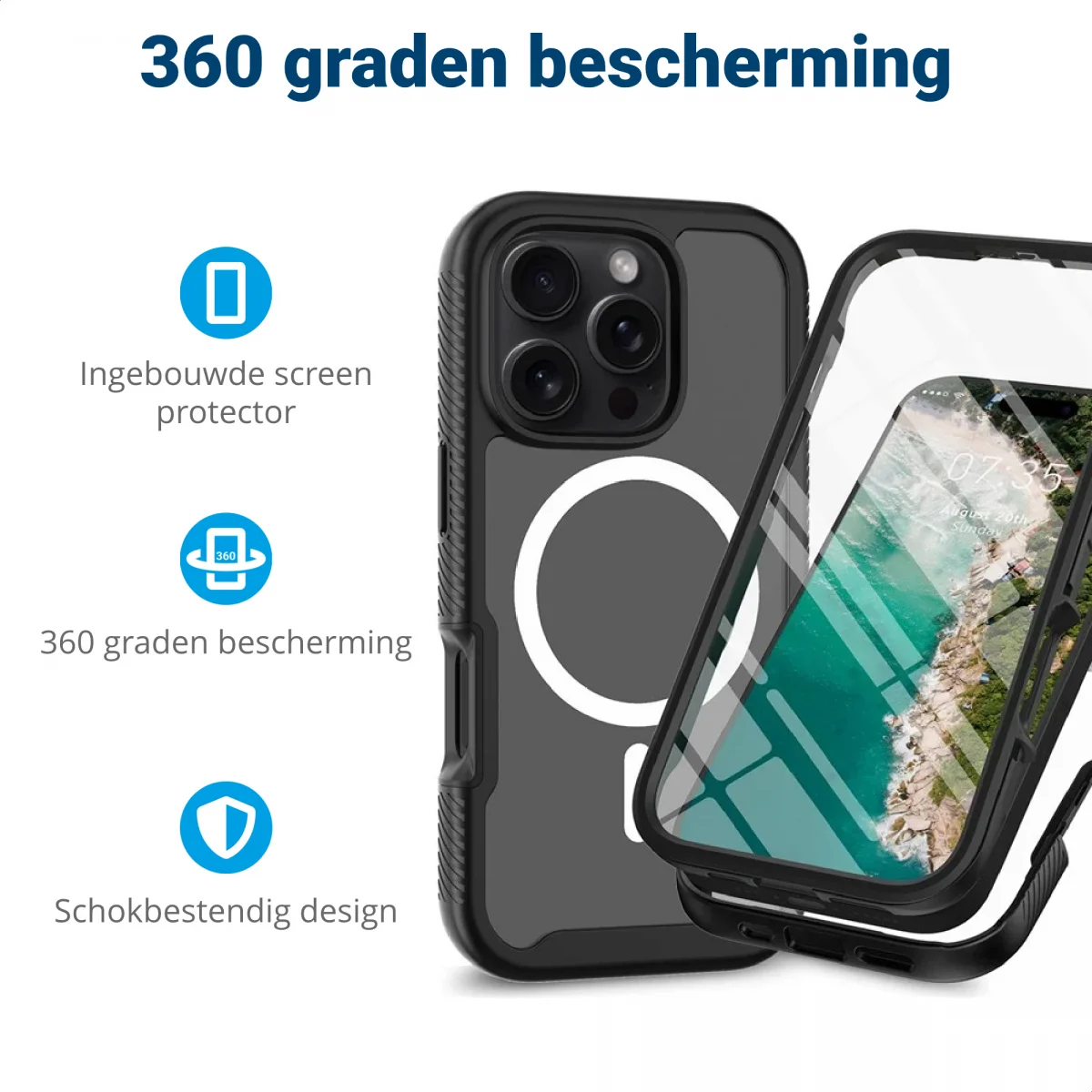Apple iPhone 16 Pro Max Hoesje Full Protect 360° Cover met MagSafe Zwart