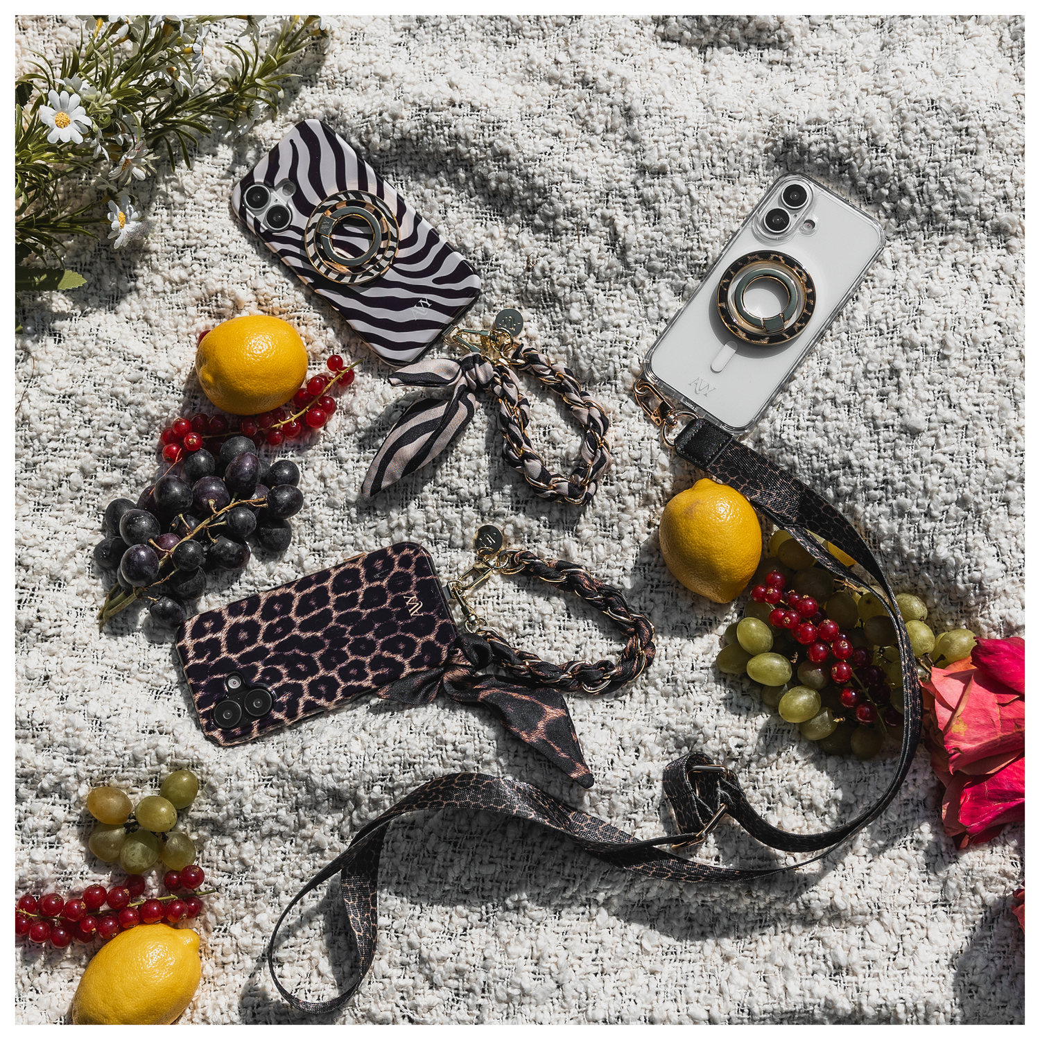 AVY Apple iPhone 13 / 14 MagSafe Hoesje met Koord 130CM Serengeti Zebra