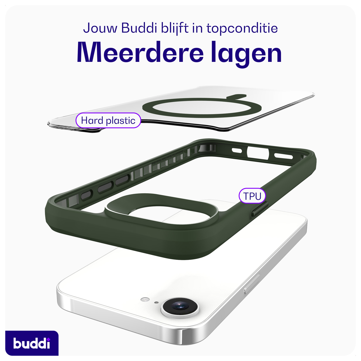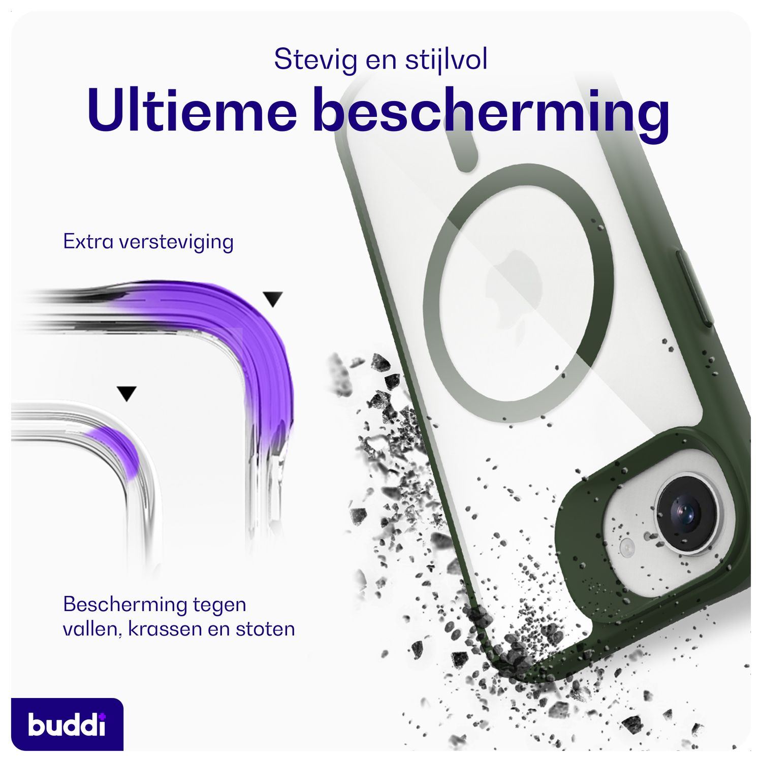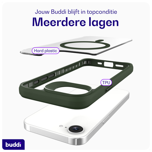 Voordelen van het Buddi Hybrid Apple iPhone 16e Hoesje MagSafe Back Cover:
