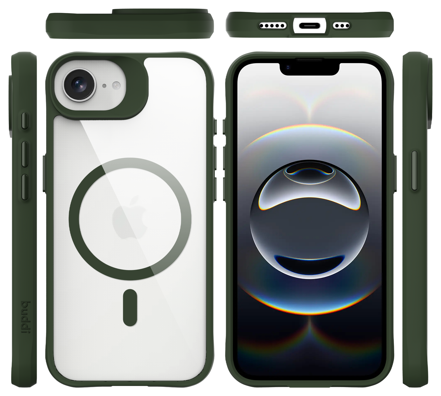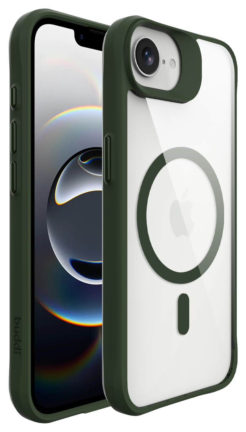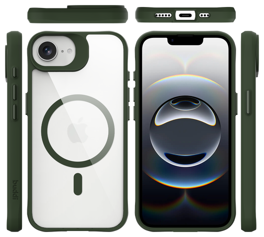 Buddi Hybrid Apple iPhone 16e Hoesje MagSafe Back Cover Transparant Groen