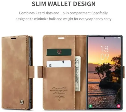 Met dit CaseMe 013 hoesje bescherm jij de voor- en achterkant van je Samsung Galaxy S25 Ultra tegen beschadigingen. Het hoesje heeft een magnetische sluiting, waardoor het hoesje goed dicht blijft en de voorflap het scherm bedekt wanneer jij je telefoon niet gebruikt. Op deze manier worden krassen op het beeldscherm voorkomen. Ook is de voorflap om te vouwen tot standaard, zodat je handsfree kunt videobellen of een serie kunt bekijken. Je bewaart je pasjes en brief- en muntgeld in de voorflap van het hoesje, zo heb je deze altijd gemakkelijk en snel bij de hand.