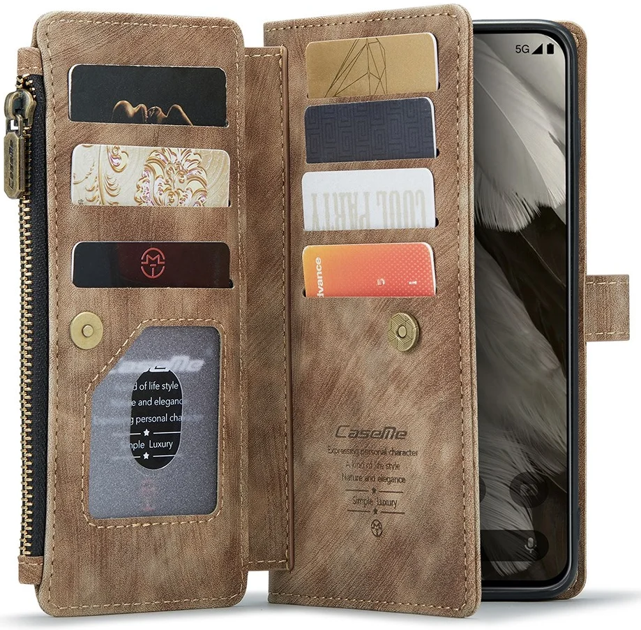 Het CaseMe C30 Google Pixel 8 hoesje heeft genoeg kaartsleuven met een geldvak aan de binnenzijde en een ritsvak aan de buitenkant zodat jij al je pasjes en brief- en muntgeld gemakkelijk meeneemt. Door de stevige magnetische sluiting blijft het hoesje stevig gesloten en vallen er geen eigendommen uit. Het hoesje beschermt de voor- en achterkant van je telefoon voor een volledige bescherming tegen schade. Ook kun je comfortabel video's of series bekijken doordat de hoes om is te vouwen tot standaard.