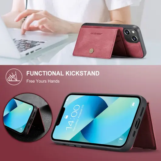 CaseMe JH-01 Apple iPhone 15 Plus Hoesje Magnetische Kaarthouder Rood