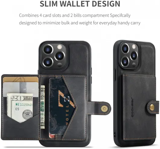 CaseMe JH-01 iPhone 15 Pro Max Hoesje Magnetische Kaarthouder Zwart
