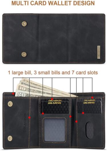 Vergeet je altijd je pasjes? Met dit DG Ming Apple iPhone 14 hoesje gebeurt dat niet meer. Op de achterkant van de back cover zit een magnetische kaarthouder bevestigd met ruimte voor maximaal 7 pasjes en munt- en briefgeld. De kaarthouder is door het magnetisme los te koppelen en apart van het hoesje te gebruiken. Door de drukknoop blijft de kaarthouder stevig gesloten waardoor er niks uit de pasjes houder valt en jij alles gemakkelijk en snel bij de hand hebt.
