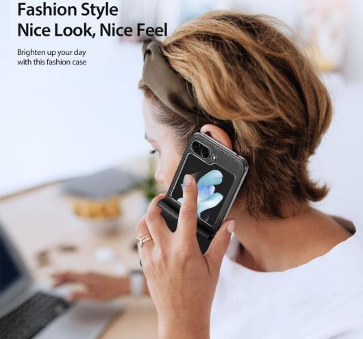 De Dux Ducis Bril beschermt jouw Samsung Galaxy Z Flip 5 in stijl. Het hoesje is vervaardigd uit hard plastic en kunstleer waardoor het een stijlvol uiterlijk heeft. Door de verhoogde rand bij de camera en display biedt de cover effectieve bescherming tegen schade van dagelijks gebruik. Het oppervlak van kunstleer zorgt voor een fijn handgevoel zodat jij je Galaxy Z Flip 5 comfortabel blijft gebruiken.