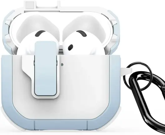 Dux Ducis PECP AirPods 4 Hoesje met Aluminum Haak Wit Blauw