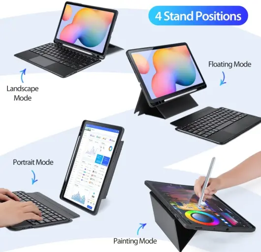 Met de Book Case verander jij je tablet in een kleine laptop. Je hoeft het touchscreen niet constant meer aan te raken, zodat je deze schoon houdt. Dankzij de snelle response van de touch pad (0,1s) kun je comfortabel te werk gaan. De Book Case beschikt over een verstelbare standaard met meerdere hoeken zodat jij je Samsung Galaxy Tab S6 Lite in de gewenste positie kunt plaatsen. In de flap van de case zit een sterke magneet die het geheel netjes afsluit.