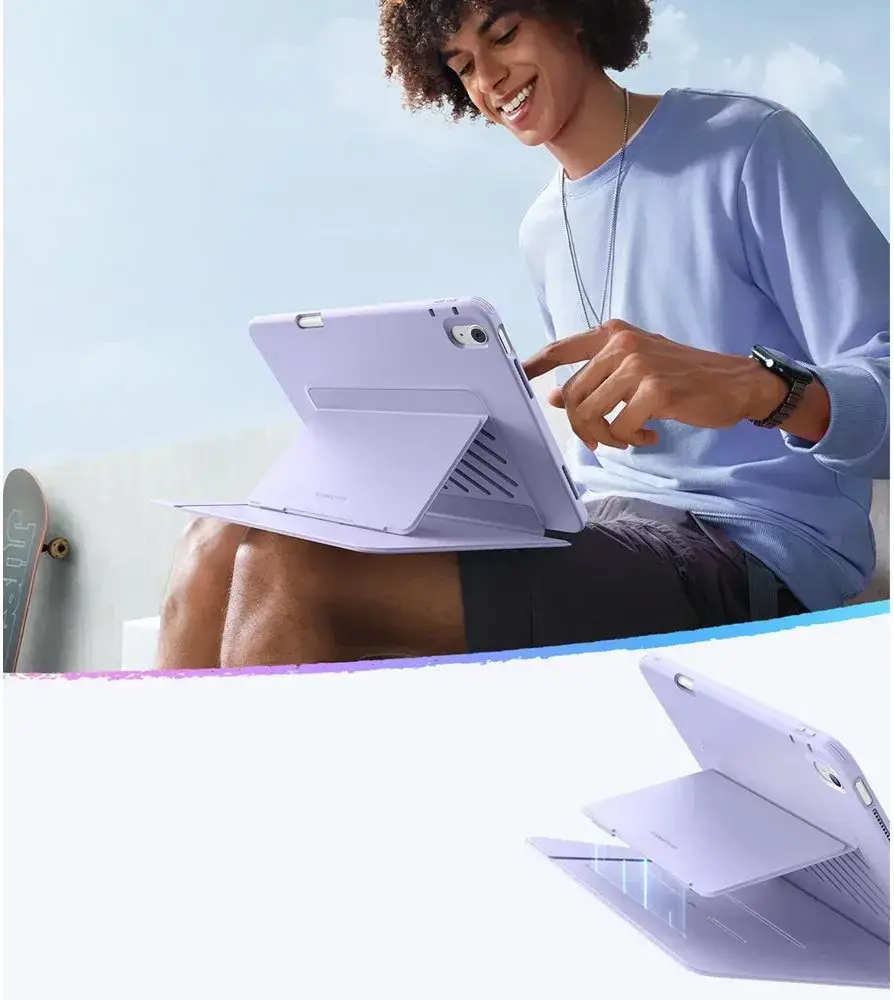 De ESR Flip Hybrid Case is een elegant en functioneel accessoire. De case heeft een lichtgewicht, slank ontwerp dat geen extra bulk toevoegt en tegelijkertijd solide bescherming biedt voor de achterkant en zijkanten van de tablet. De flap zit stevig tegen het scherm om het te beschermen tegen krassen en vuil, terwijl de automatische sleep- en wake functie de batterijduur verlengt. Een van de grootste voordelen van de ESR Flip Case is de veelzijdigheid - de case is eenvoudig te veranderen in een verstelbare standaard, ideaal om te schrijven, video's te bekijken, te videovergaderen of te tekenen. De ingebouwde Apple Pencil houder maakt het niet alleen mogelijk om je Apple Pencil op te bergen, maar ondersteunt ook magnetisch opladen, zodat je stylus altijd klaar is voor actie.