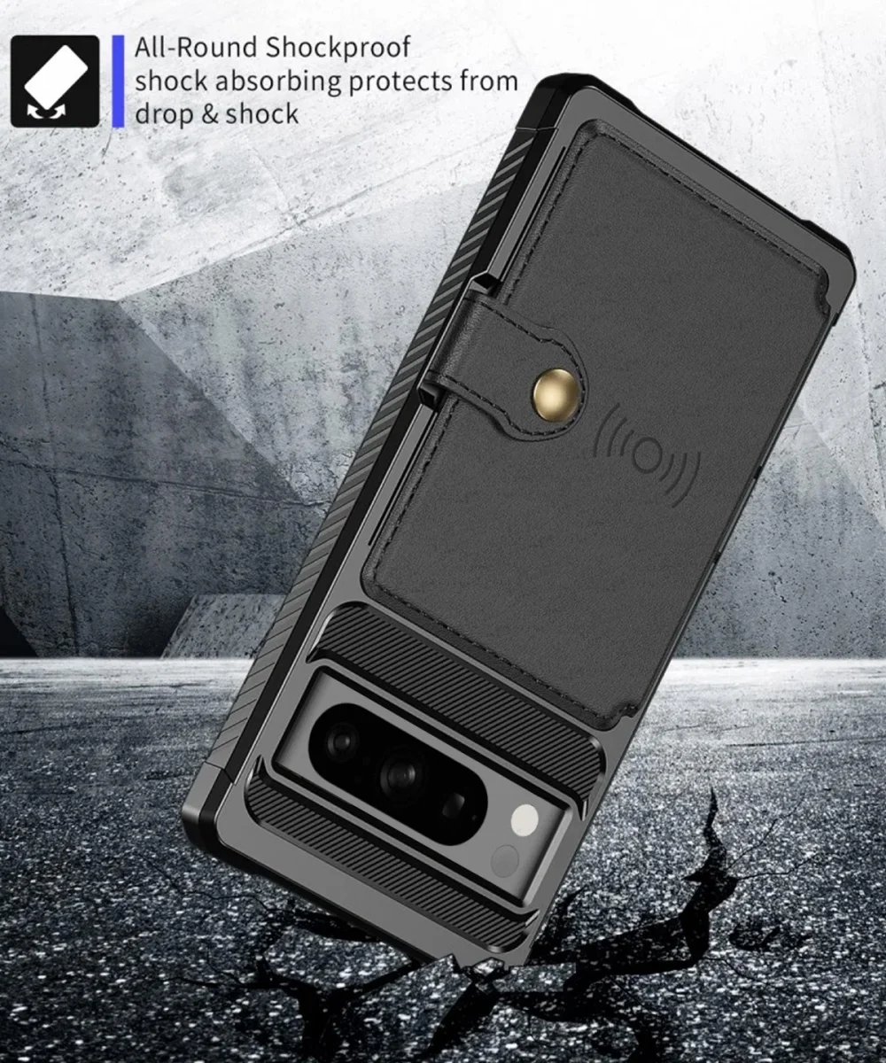 Vergeet je vaak je pasjes? Met dit Google Pixel 8 Pro hoesje is dat verleden tijd! Deze back cover is voorzien van vier kaartvakken en ruimte voor briefgeld waardoor het jouw portemonnee kan vervangen! De kaarthouder op de achterkant is voorzien van een drukknoopsluiting zodat je pasjes/briefgeld er niet uitvallen en is magnetisch te plaatsen op bijvoorbeeld een autohouder. Daarnaast biedt het hoesje door de verhoogde randen bij de camera en display bescherming tegen krassen en andere dagelijkse schade.