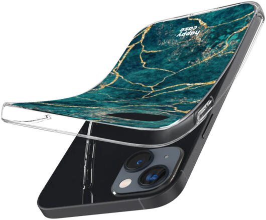 HappyCase iPhone 14 Hoesje Flexibel TPU Aqua Marmer Print