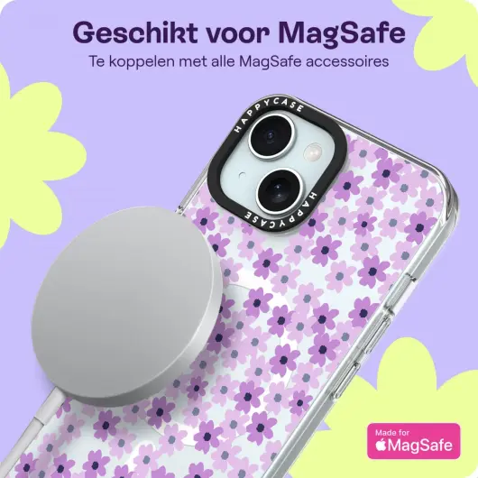 Voeg een unieke Bloemen look toe aan jouw Apple iPhone 15 met dit HappyCase Joy Hoesje! Met een goede bescherming, een stijlvol, transparant design en de MagSafe functie, is dit een must have voor jouw iPhone 15!