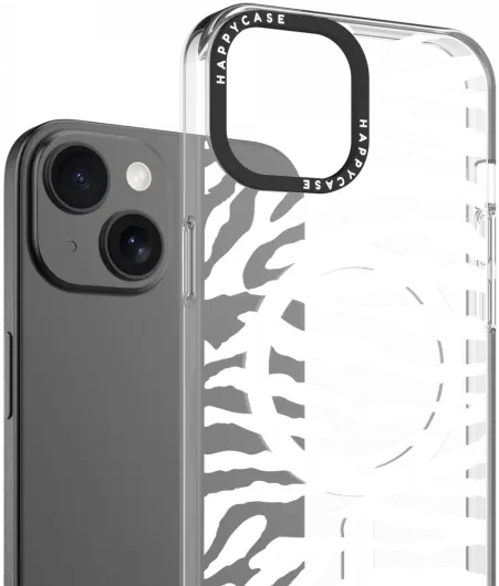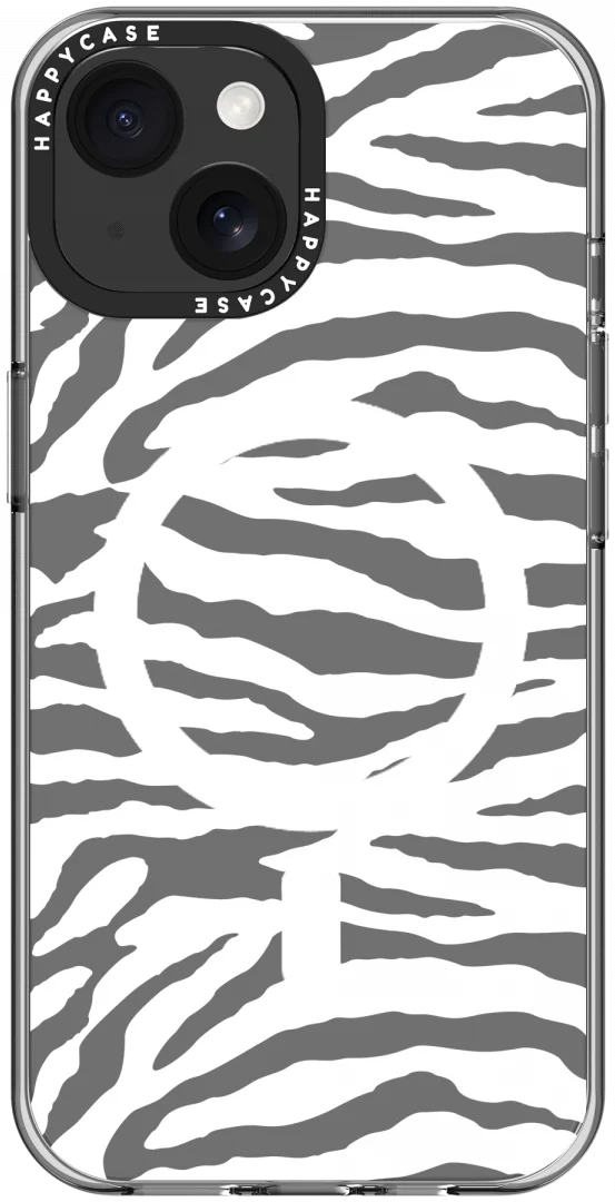 HappyCase Joy Apple iPhone 15 Hoesje MagSafe Back Cover Silver Zebra