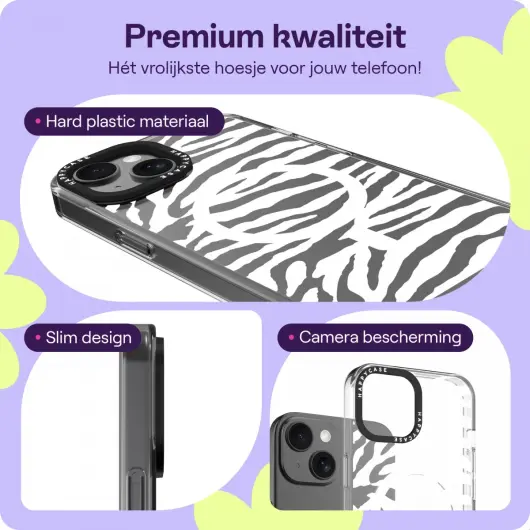 Voeg een unieke Zebra look toe aan jouw Apple iPhone 15 met dit HappyCase Joy Hoesje! Met een goede bescherming, een stijlvol, transparant design en de MagSafe functie, is dit een must have voor jouw iPhone 15!