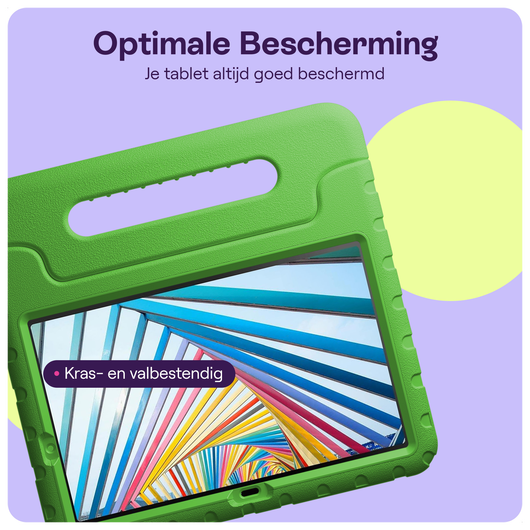 Met deze HappyCase Lenovo Tab M11/K11 hoes spelen jouw kinderen veilig met hun tablet. De stevige kinderhoes is gemaakt van schokbestendig foam materiaal dat je Tab M11/K11 beschermt uitstekend tegen krassen, stoten en vuil. Door het handvat neem jij je tablet overal gemakkelijk mee naar toe. Buig dit handvat tot een standaard zodat je kinderen een film of video kunnen bekijken zonder dat ze de tablet vast te hoeven houden.