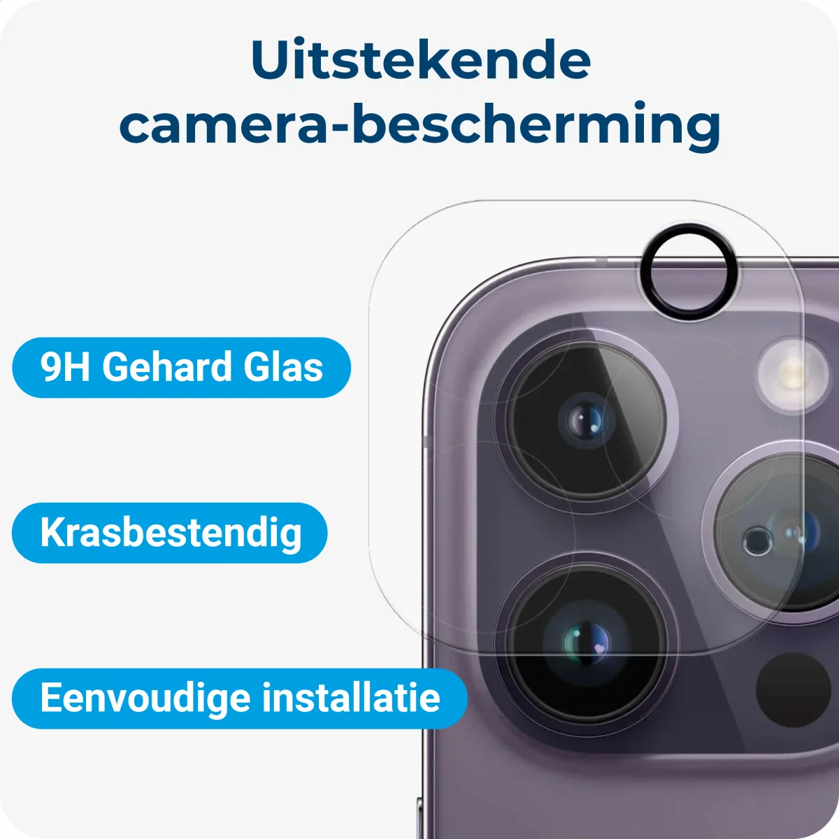 Om de bescherming af te maken, wordt er een camera protector meegeleverd. Zo is je camera optimaal beschermd tegen vallen en barsten, maar ook tegen krassen door bijvoorbeeld sleutels of andere scherpe voorwerpen. Hierdoor behoud je het beste van je iPhone 15 Pro camera en blijf je scherpe foto's en video's maken!