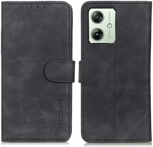 KHAZNEH Motorola Moto G54 Hoesje Retro Wallet Book Case Zwart