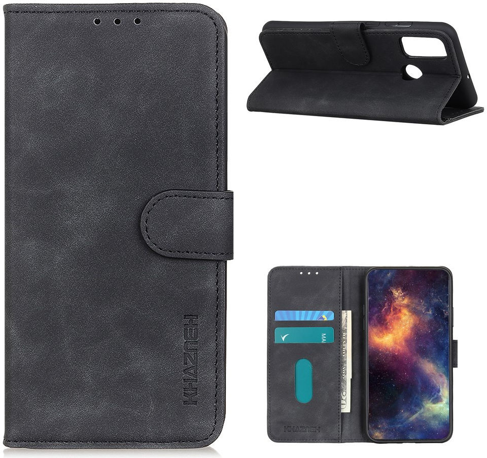 KHAZNEH Oppo A53 / A53s Hoesje Retro Wallet Book Case Zwart