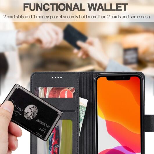 Het Portemonnee Book Case Hoesje beschikt naast de handige stand functie ook over kaarthouder. Aan de binnenzijde van het Portemonnee Stand Hoesje vind je een aantal vakken. Deze vakken zijn speciaal gemaakt voor je pinpas, creditcard, ID kaart, OV-kaart of zelfs briefgeld. Zo heb je alles gemakkelijk bij de hand, in één hoesje bij jouw Apple iPhone 12 Pro Max.