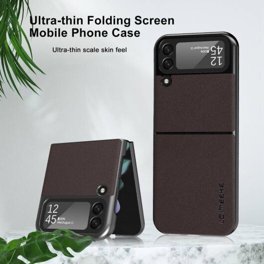 LC.IMEEKE Samsung Galaxy Z Flip 4 Hoesje Kunstleer Back Cover Bruin