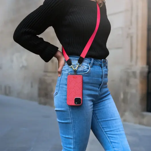 Je moet moeite doen om de telefoon in de backcover te krijgen, waardoor het gelijk stevig zit. Mooi, goed te verstellen koord.