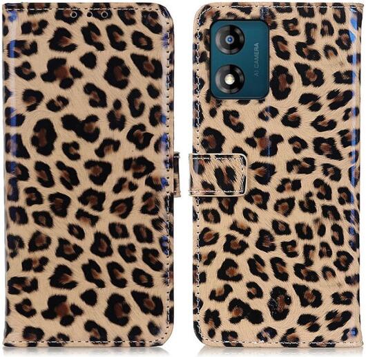 Motorola Moto E13 Hoesje Portemonnee Book Case Luipaard Print