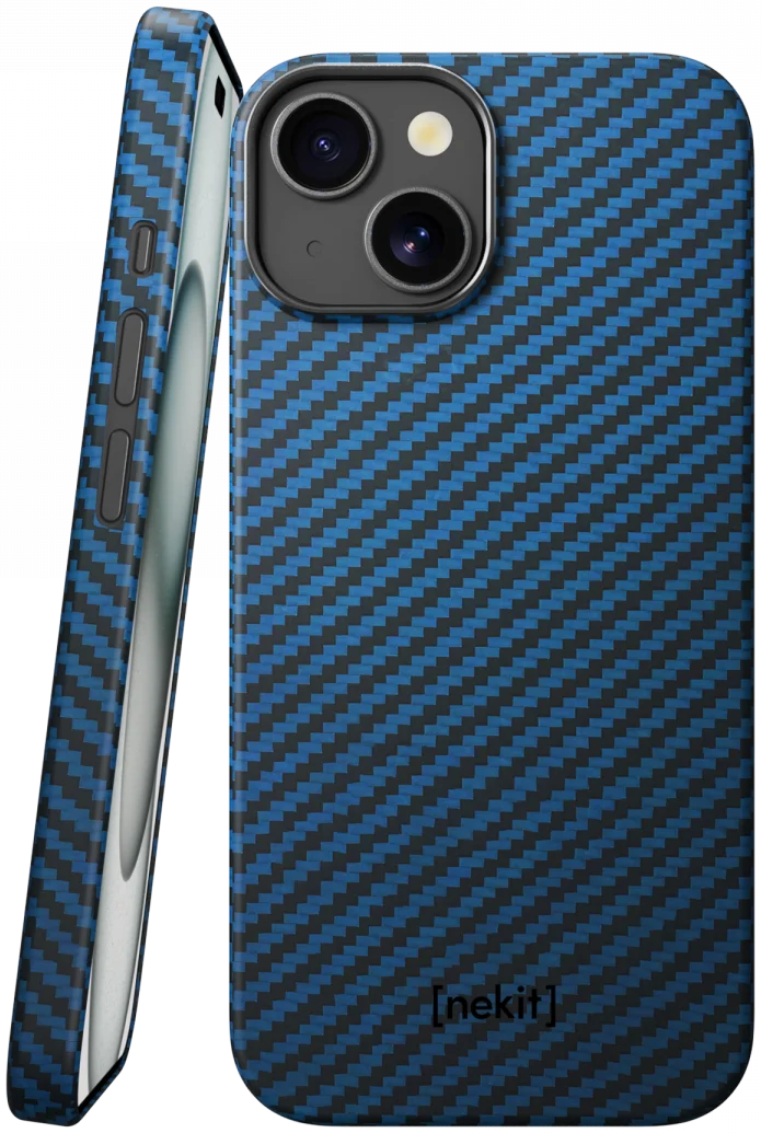 NEKIT Fiber Apple iPhone 13 Hoesje MagSafe Kevlar Back Cover Dun Blauw
