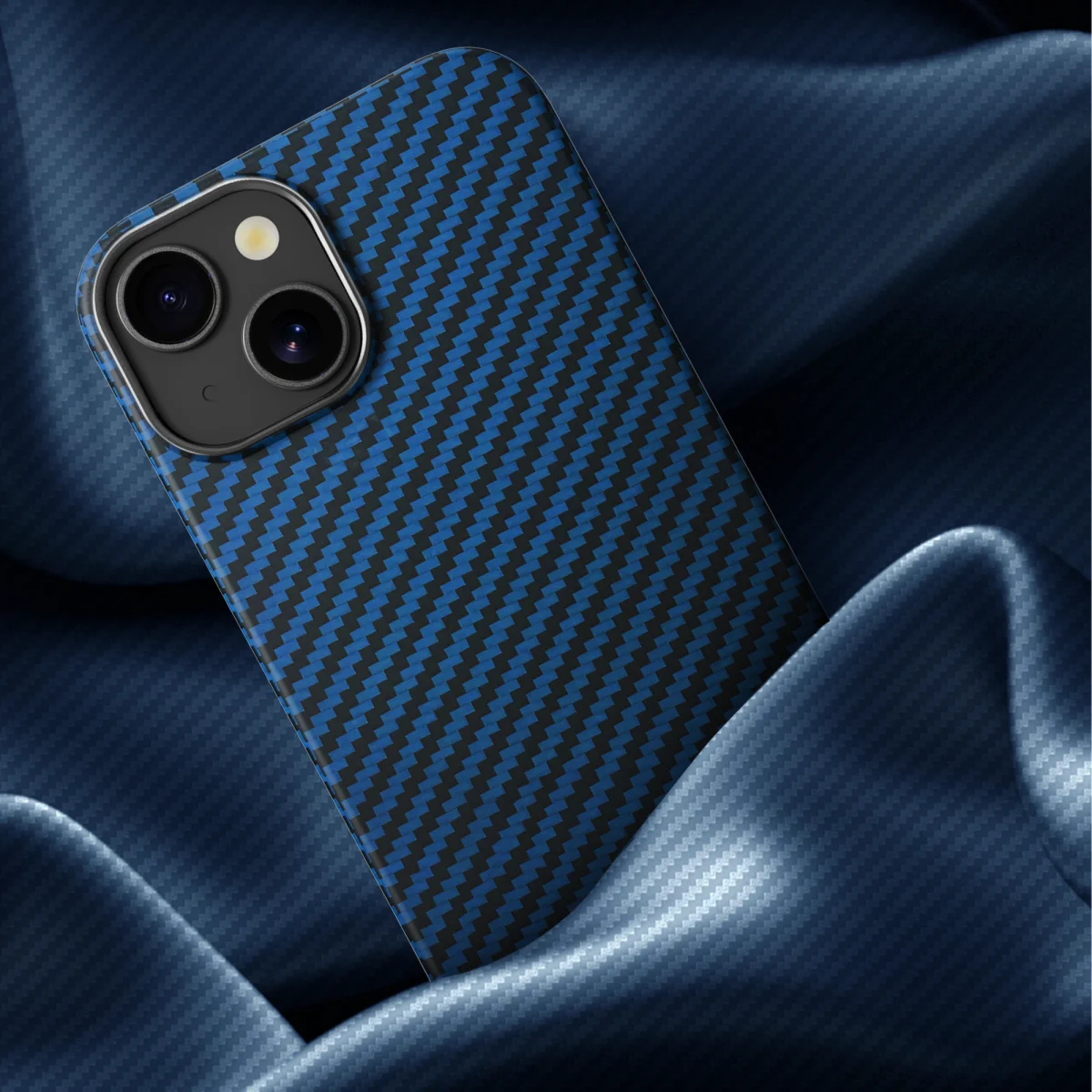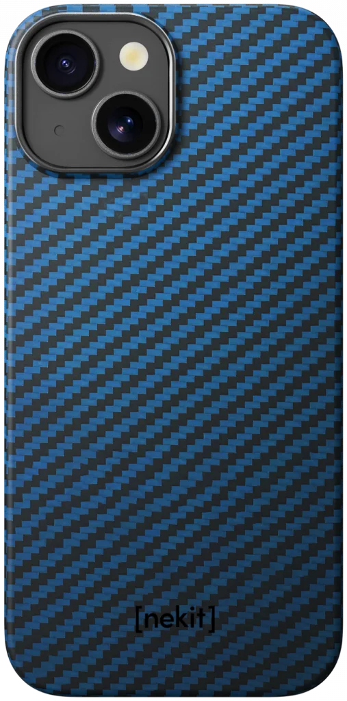 NEKIT Fiber Apple iPhone 15 Hoesje MagSafe Kevlar Back Cover Dun Blauw