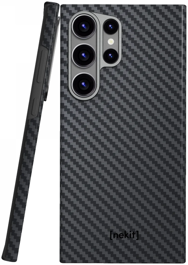 NEKIT Fiber Samsung Galaxy S23 Ultra Hoesje MagSafe Kevlar Back Cover Dun Zwart