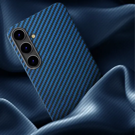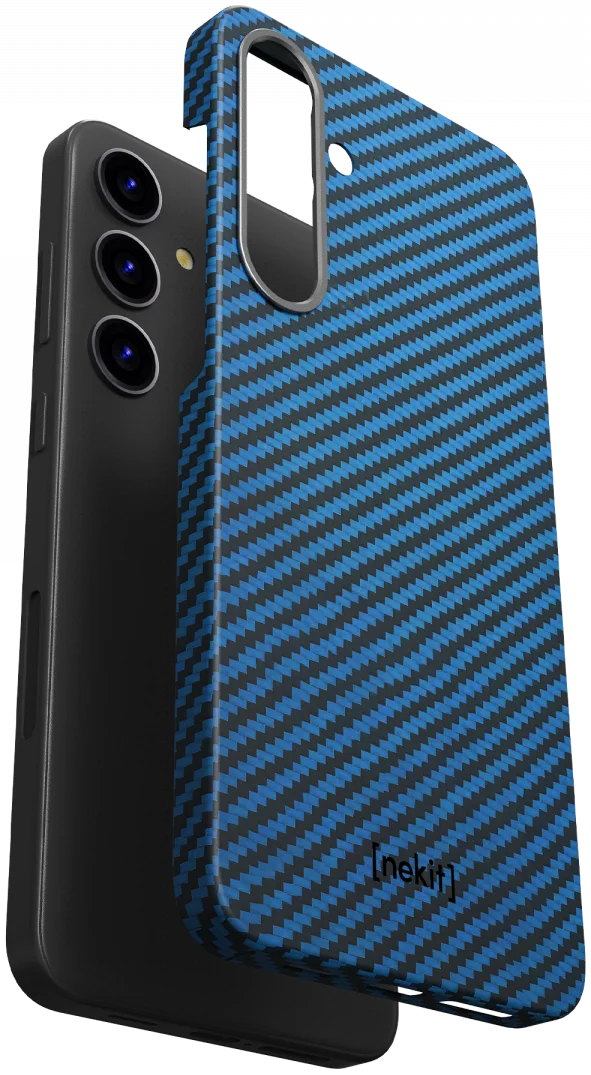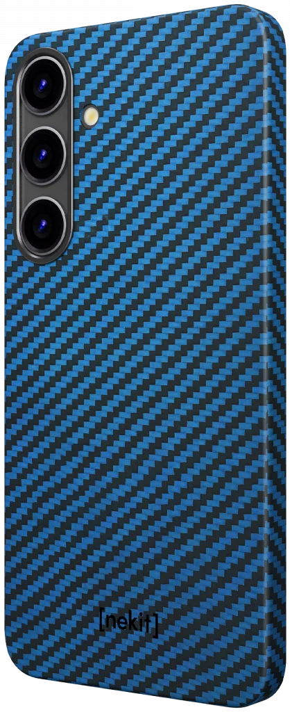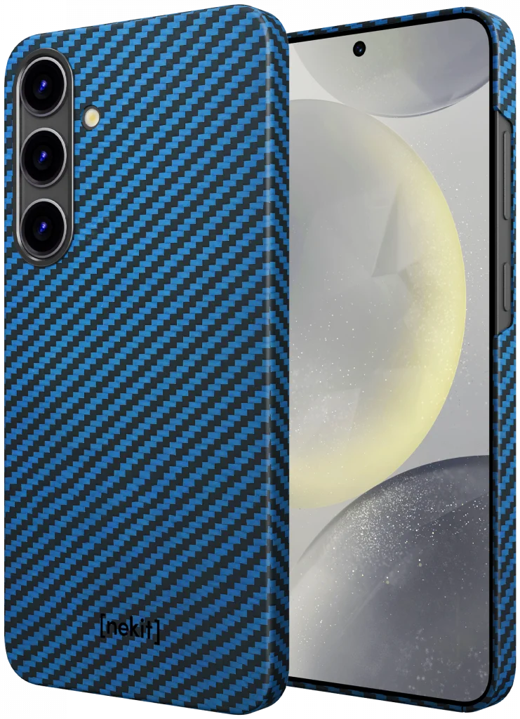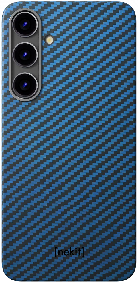 NEKIT Fiber Samsung Galaxy S24 Hoesje MagSafe Kevlar Back Cover Dun Blauw