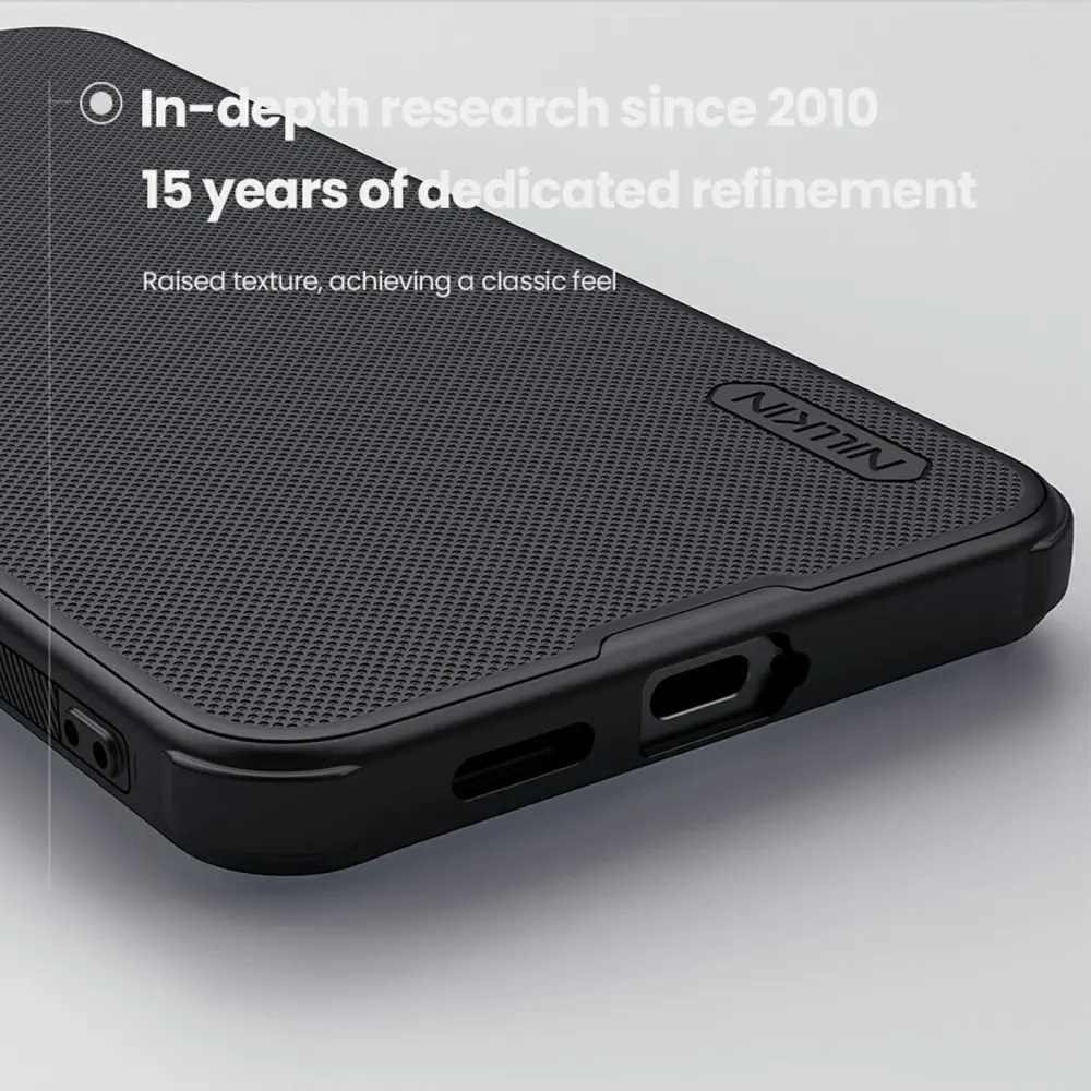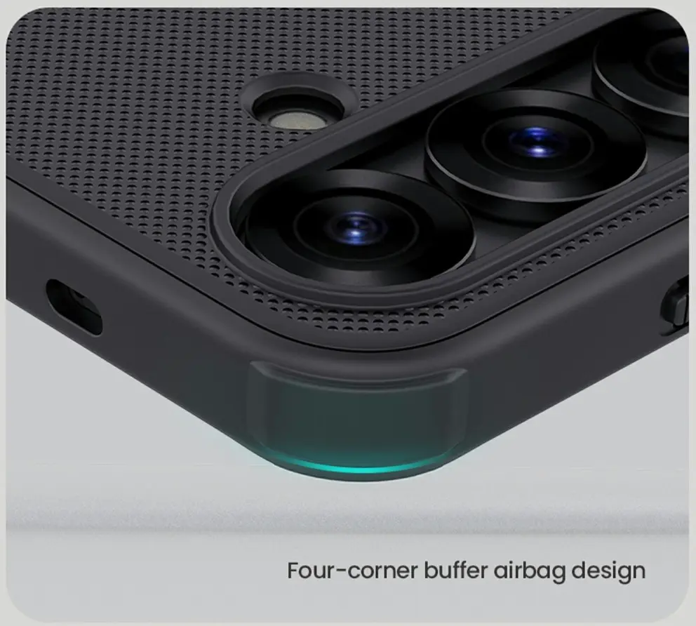 De Nillkin Super Frosted Shield heeft een matte oppervlak waardoor je Samsung Galaxy S25 Plus een stijlvol uiterlijk krijgt met verbeterde grip. De back cover heeft verstevigingen in de hoeken en verhoogde randen bij de camera. Hierdoor krijg je uitstekende bescherming tegen vallen en stoten. Door een ingebouwde magneet is het hoesje compatibel met MagSafe en Qi2-accessoires.